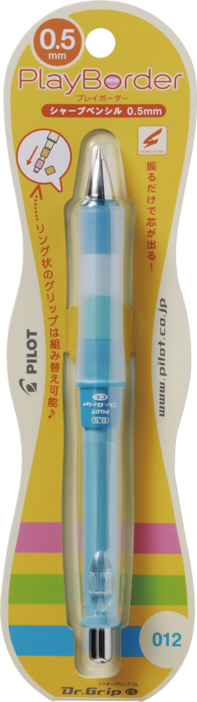 「ドクターグリップCLプレイボーダー」は、3つに分かれたカラフルな内グリップを、組み替えたり交換したりして、お気に入りの組合せを楽しめるドクターグリップです。パイロット独自のフレフレ機構を搭載し、ペンを振るだけで簡単に芯を送り出すことができます。
