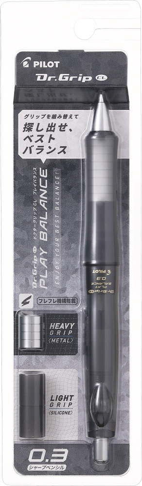 『ドクターグリップCL プレイバランス』は、付属する重量と素材の異なる2種類の内グリップを組み合わせ、組み替えることで、自分の好みの重さと重心バランスにカスタマイズ可能なシャープペンシルです。シリコーンと金属の各3つの内グリップを組み替えることによって、自分の書きやすい重量や重心に合わせることができます。