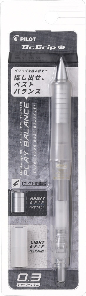『ドクターグリップCL プレイバランス』は、付属する重量と素材の異なる2種類の内グリップを組み合わせ、組み替えることで、自分の好みの重さと重心バランスにカスタマイズ可能なシャープペンシルです。シリコーンと金属の各3つの内グリップを組み替えることによって、自分の書きやすい重量や重心に合わせることができます。