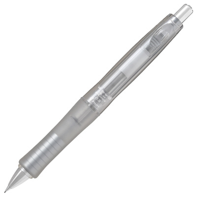 ボディカラーは、落ち着きのあるダーク調のクリアカラーで、中の構造が透けて見えるデザインです。外グリップにも透け感があり、組み替えた内グリップを確認できます。0.5mmタイプで、クリアモスグリーン、クリアレッド、クリアネイビー、クリアブラック、ノンカラーの5色、0.3mmタイプで、クリアネイビー、クリアブラック、ノンカラーの3色を揃えました。