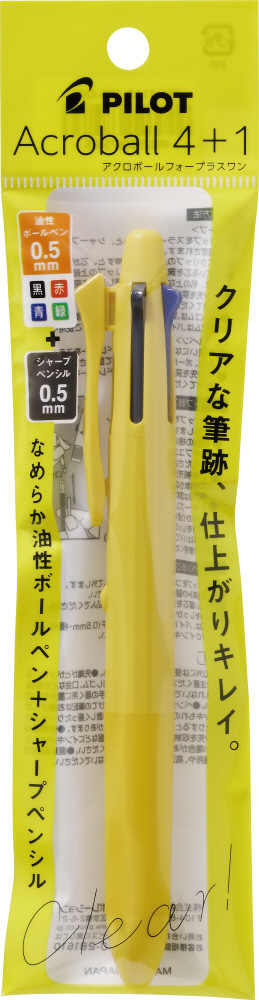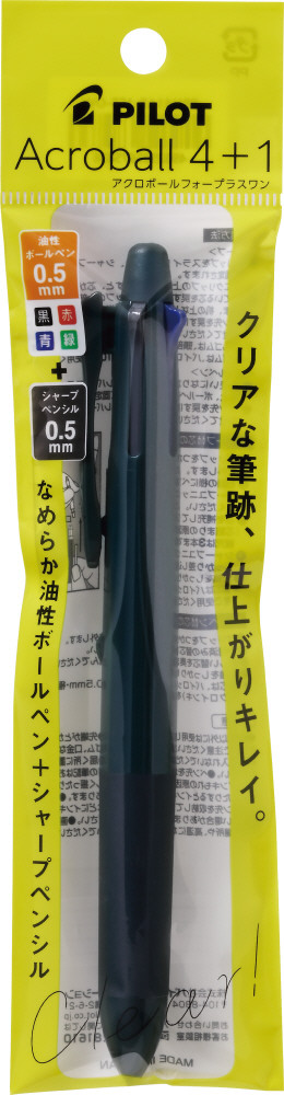 0.5mmボールペン4色(黒・赤・青・緑)とシャープペンシル0.5mmを搭載した多機能筆記具です。