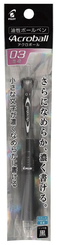 アクロボールに使用しているアクロインキは、粘度を一般的な油性ボールペンの1/5にすることで、水性に近いサラサラなインキになり、ボールがスムーズに回ります。